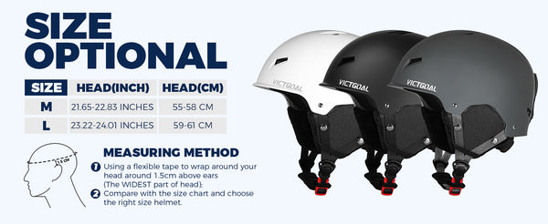 • ๐’๐ข๐ณ๐ž ๐€๐๐ฃ๐ฎ๐ฌ๐ญ๐š๐›๐ฅ๐ž - To adjust the size of this snow helmet, simply turn the size adjustment dial. It's available in small (18.9-20 inches), medium (20.5-21.5 inches), and large (22-24 inches) sizes. To ensure a comfortable fit, measure the circumference of your head by wrapping the tape measure around the widest part of your head, keeping it level at the front and back and above your ears. This will give you the correct size for a snug and comfortable fit.